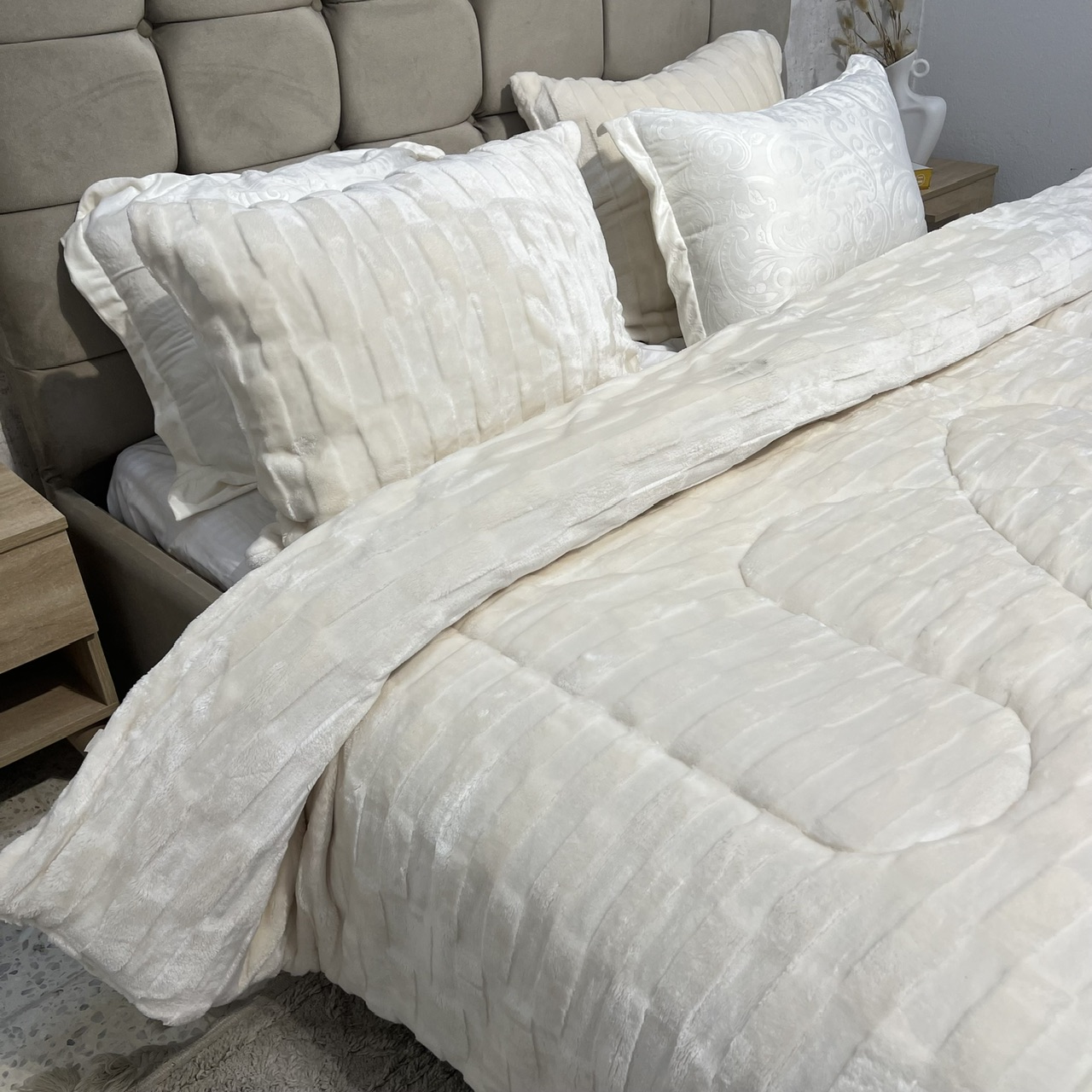 Ensemble Couette Fluffy en Fourrure Lapin – 5 Pièces, Taille King SizeEnsemble Couette Fluffy en Fourrure Lapin – 5 Pièces, Taille King Size
