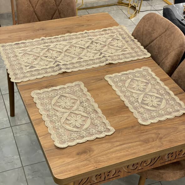 Soyez le premier à laisser votre avis sur “Lot de 3 Nappes de Table – Dentelle Beige”