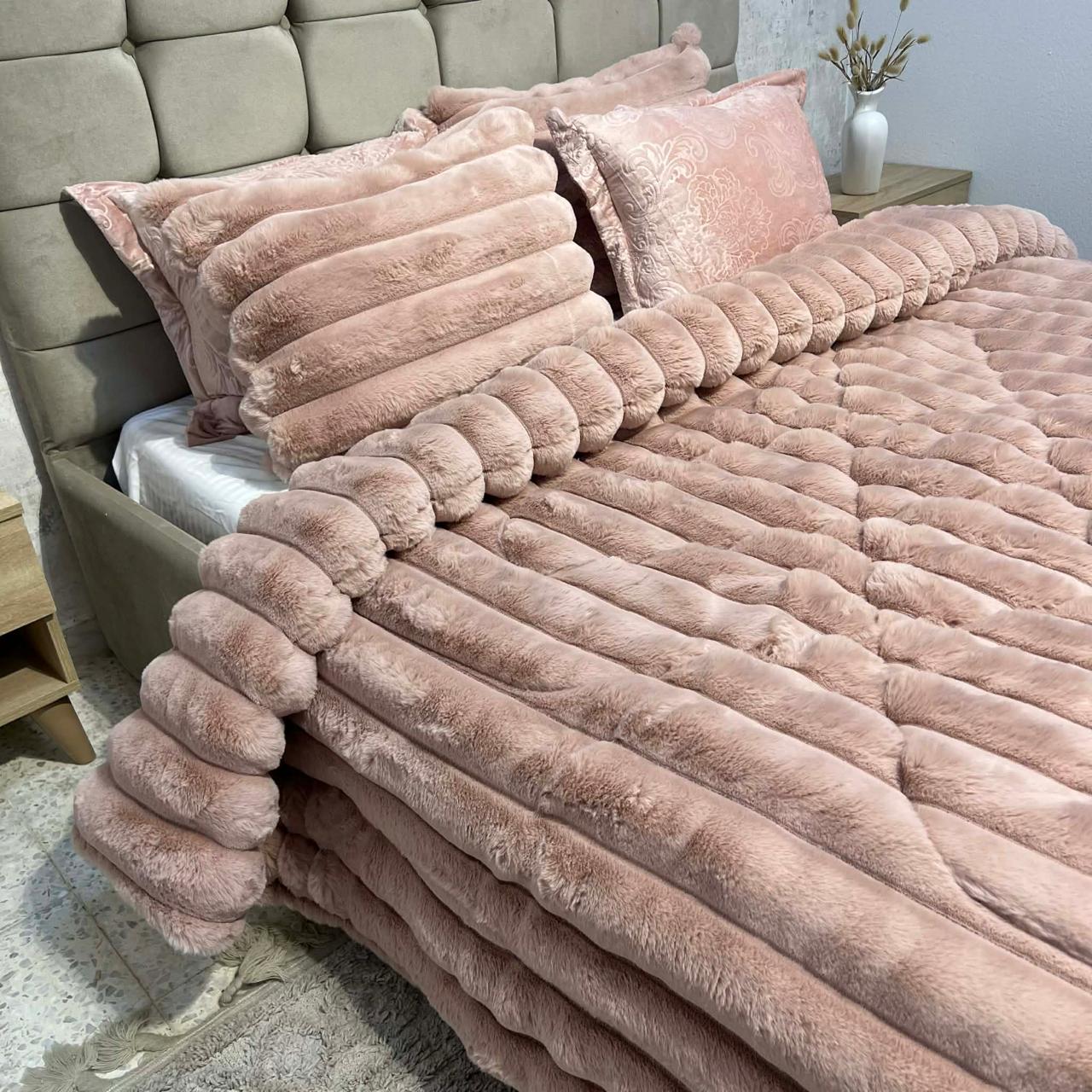 LUX -Ensemble Couette Fluffy Lotus en Fourrure Lapin – 5 Pièces