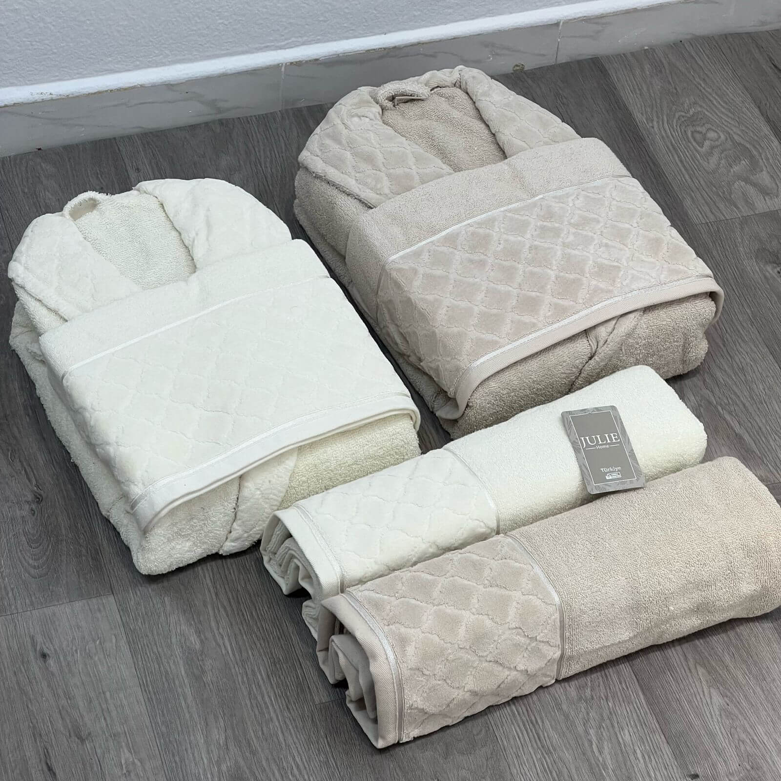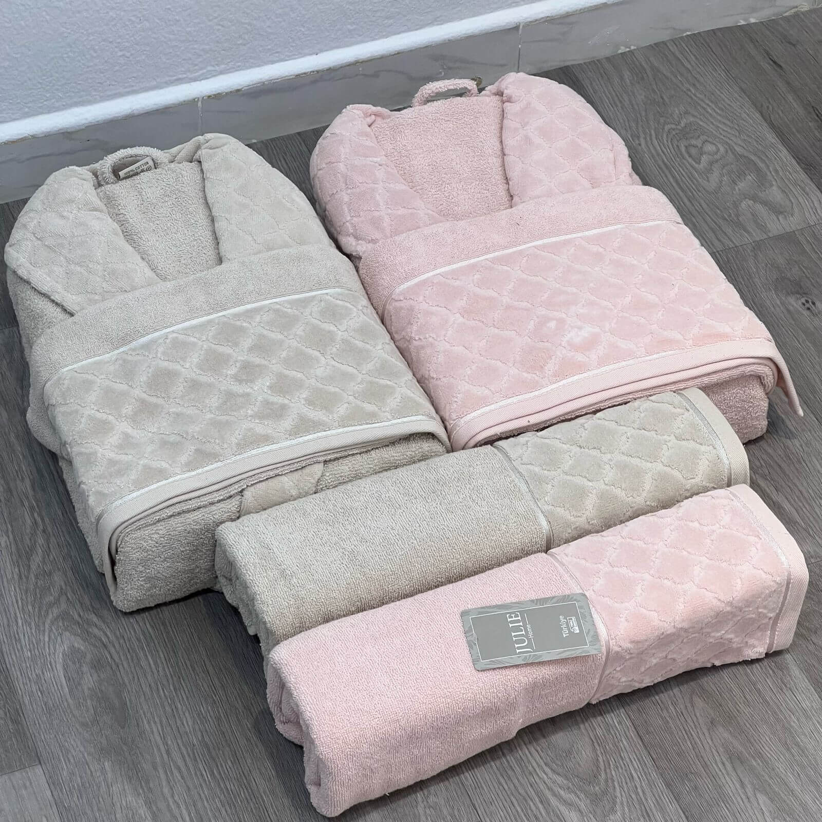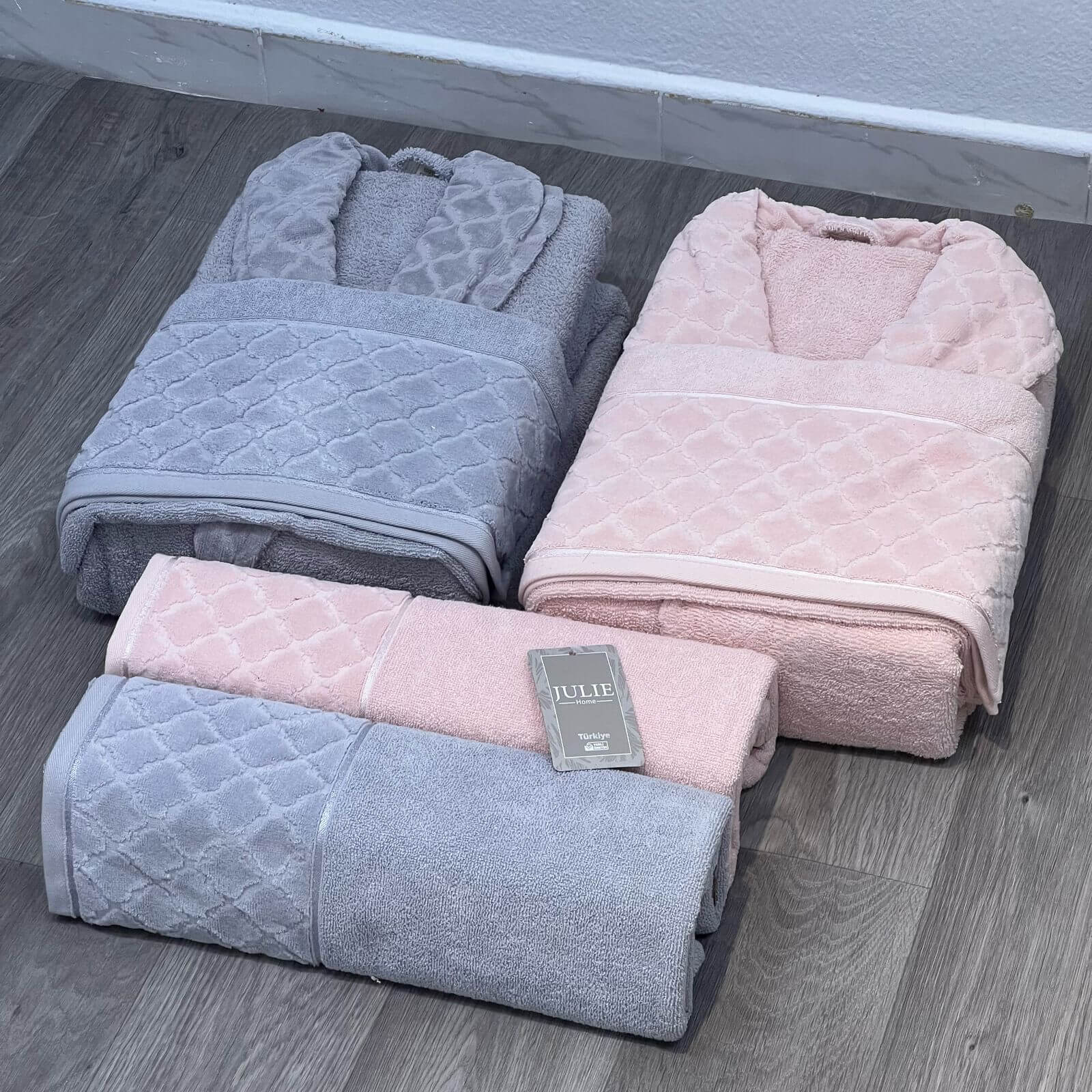 - 2 Peignoirs (1 pour femme et 1 pour homme) : Taille standard adaptée aux tailles M, L, XL et XXL. Confortables et enveloppants, ils sont parfaits pour se détendre après un bain ou une douche.